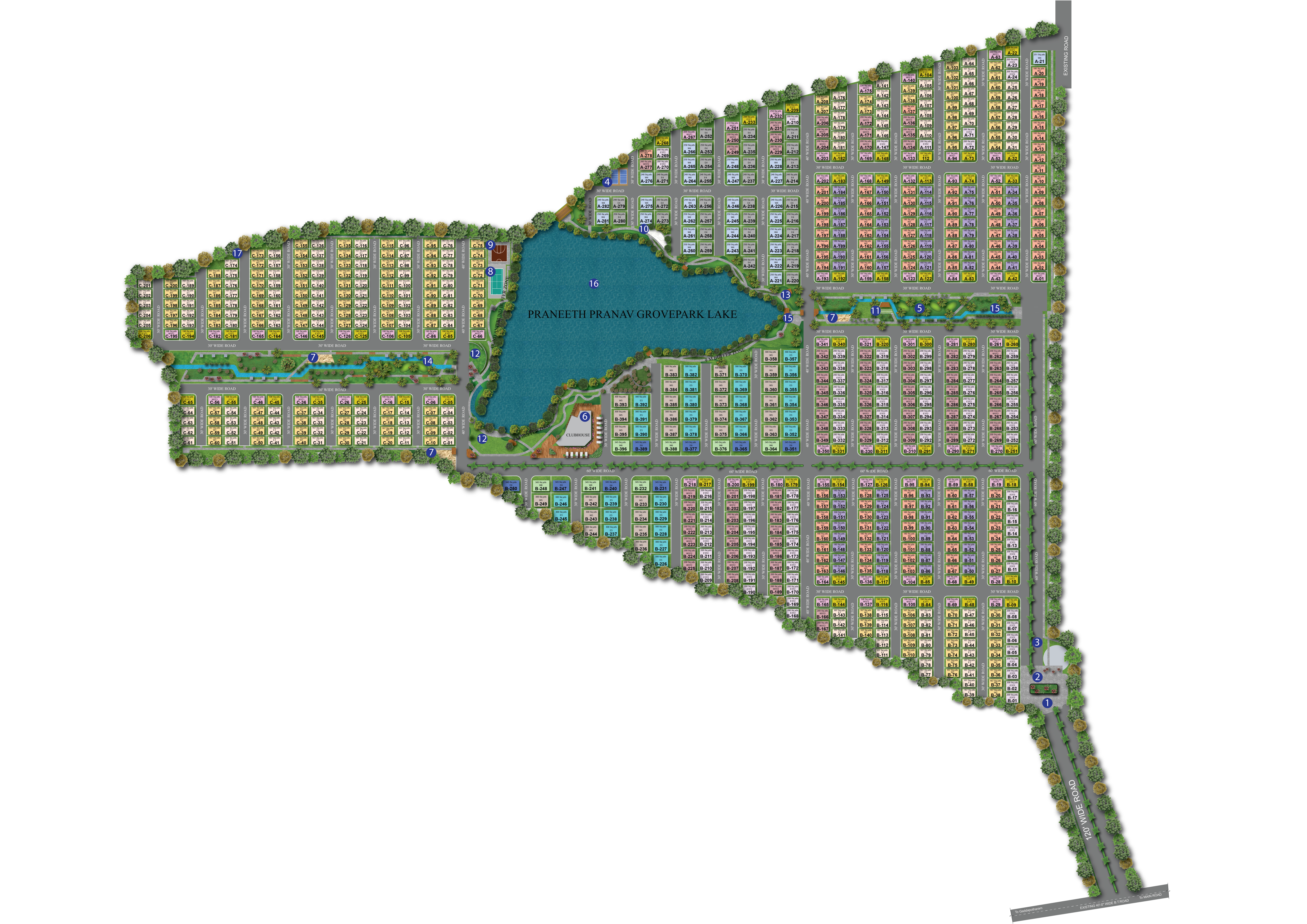 Welcome to luxury living at its largest scale yet. Featuring Spanish Model Elevations and placed around a natural lakeside setting, Grove Park is a serene paradise for you and your family to call home. Our ultra-luxurious triplex villas showcase Praneeth Group’s signature architectural brilliance, with ultimate space efficiency and strict adherence to traditional roots and values.